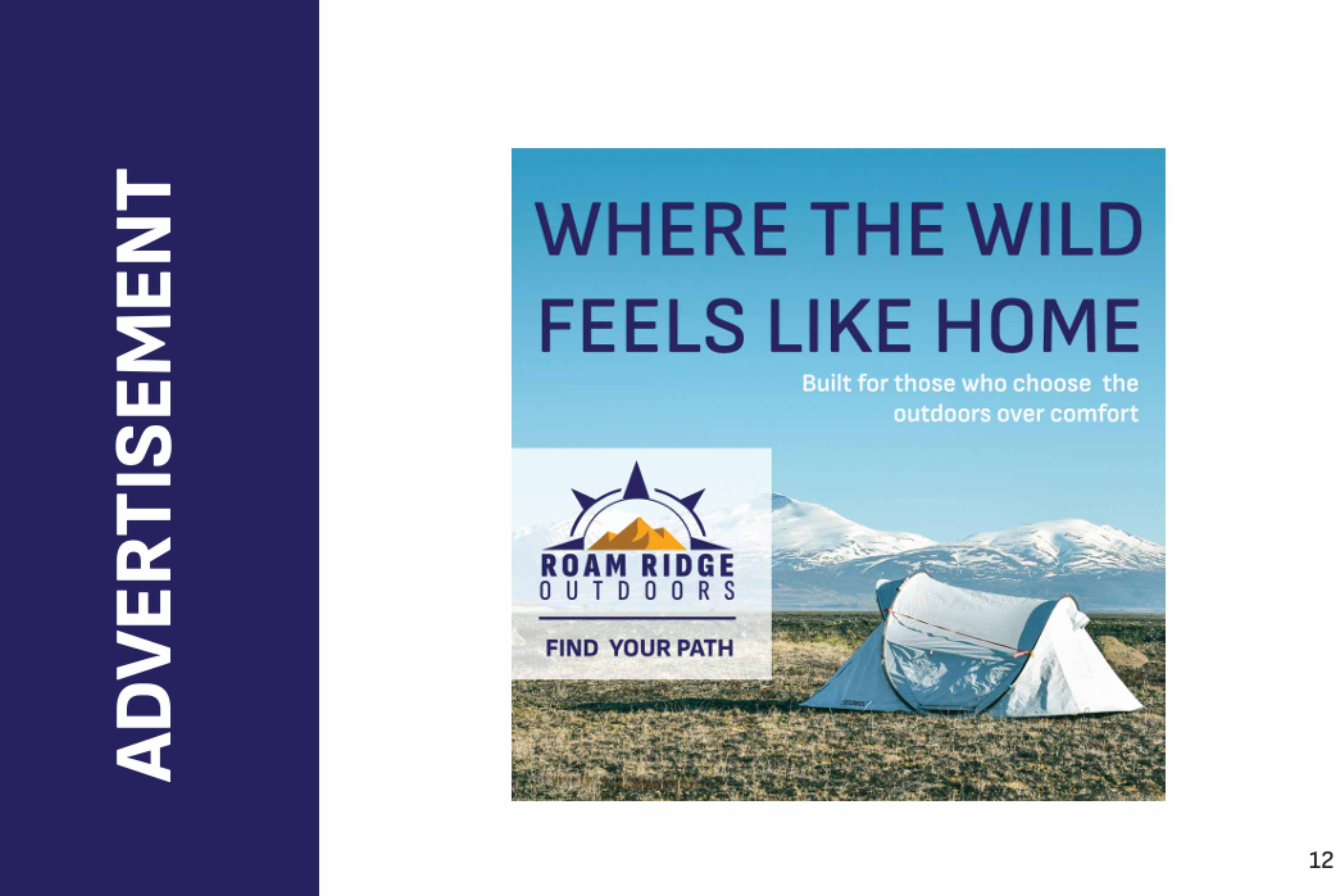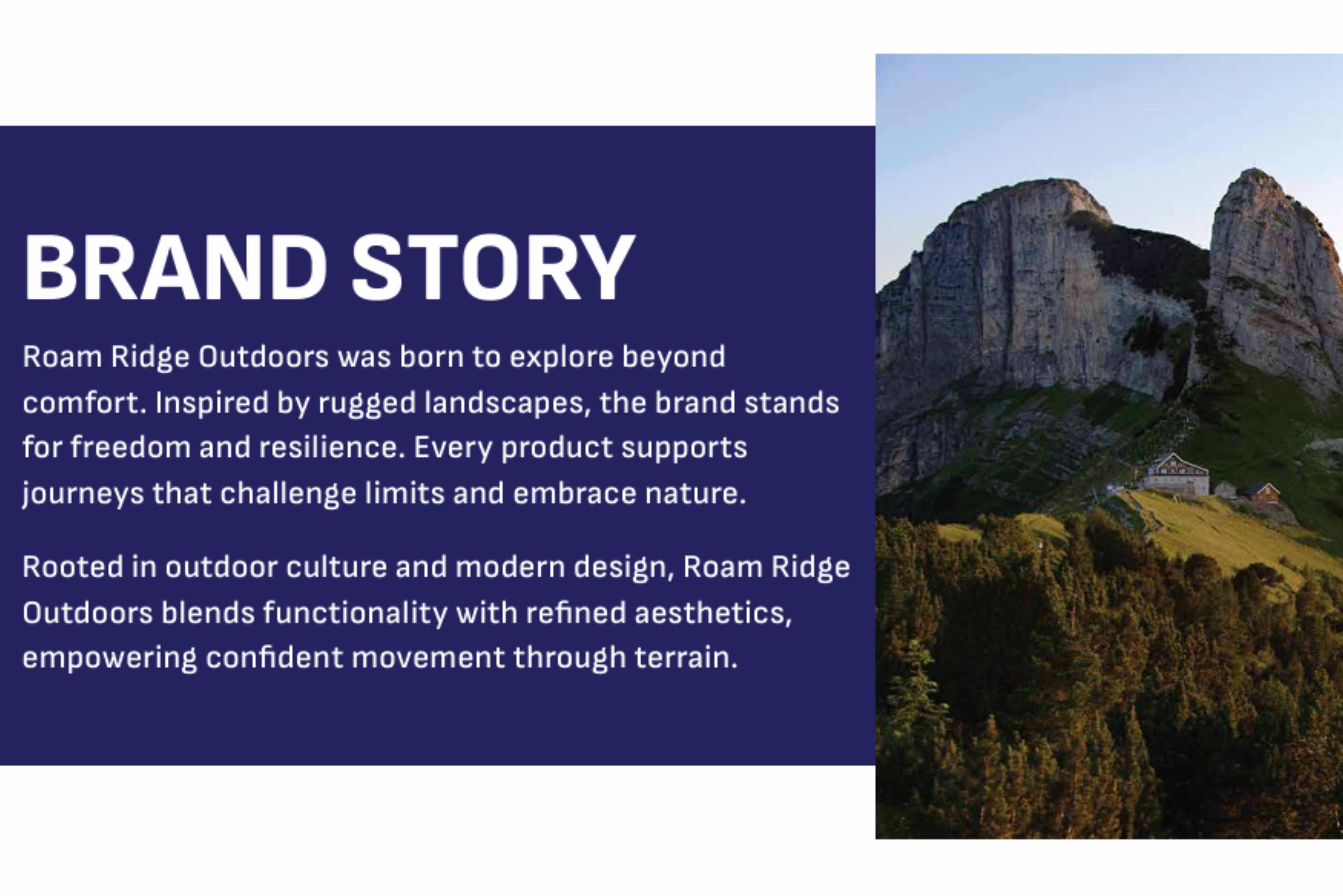 A complete brand identity and marketing system designed for Roam Ridge Outdoors, focusing on outdoor exploration, durability, and a strong visual presence across multiple applications.